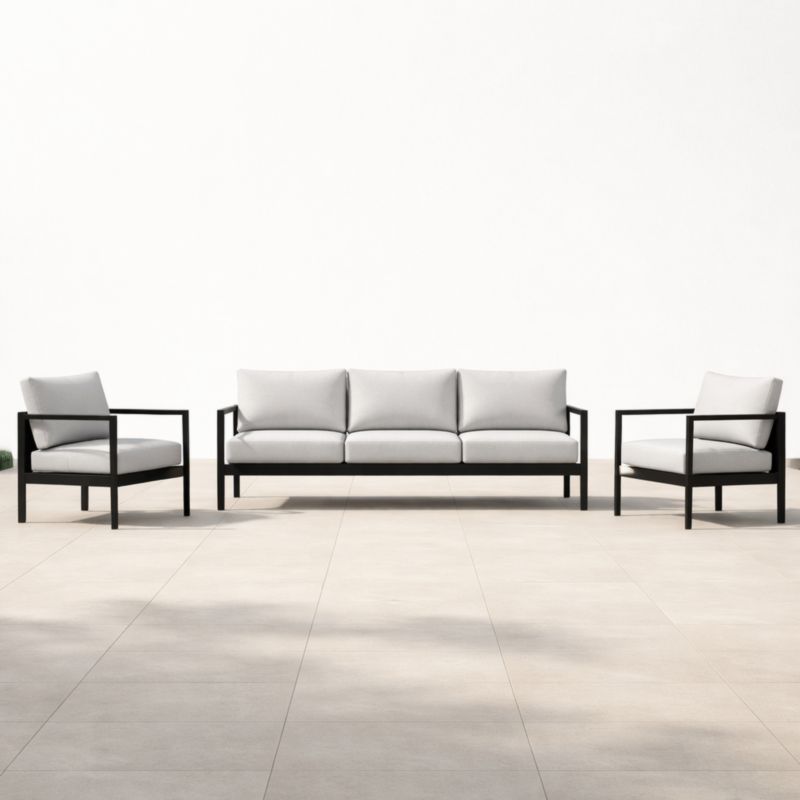 Ensemble de Salon de Jardin en Aluminium Noir avec Coussins Gris