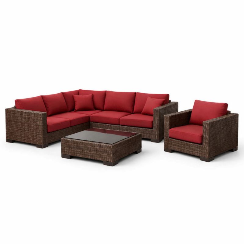Ensemble de Salon de Jardin en Résine Tressée Marron et Rouge
